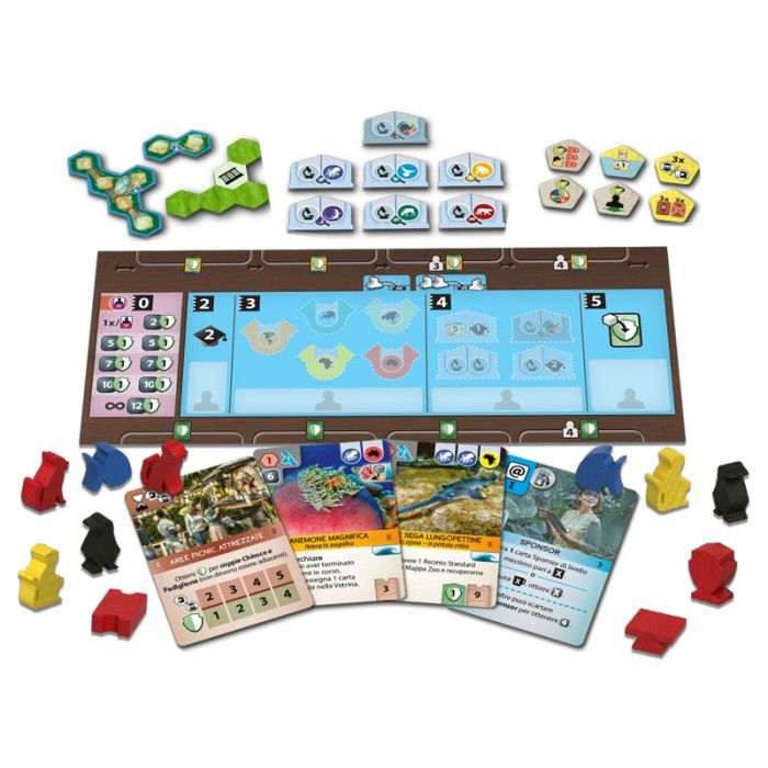 Inoltre, nuove carte Zoo e carte Punteggio Finale, tessere Bonus, contatori alternativi e segnalini giocatore a forma di animale renderanno ancora più divertente giocare ad Ark Nova!