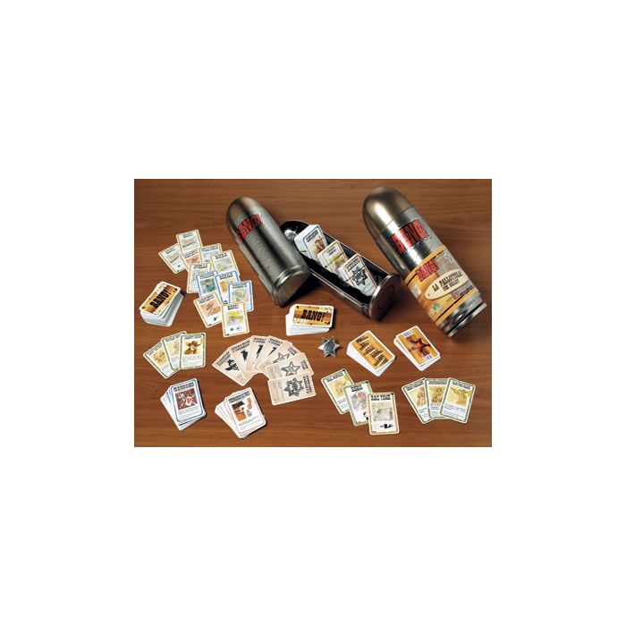 Questa edizione speciale in confezione di metallo a forma di pallottola contiene le carte del gioco base di BANG! e ben tre espansioni!