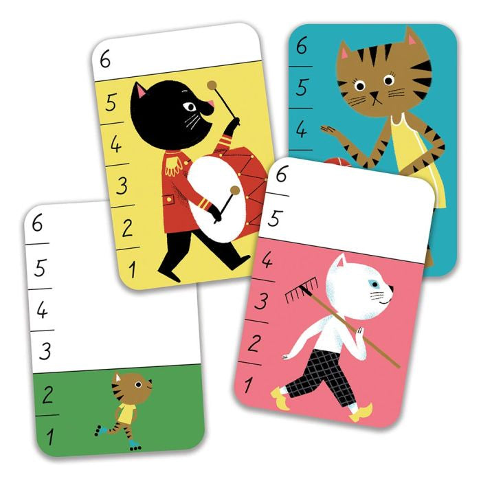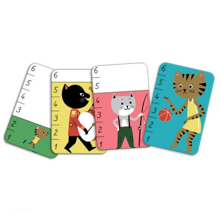 Bata-Miaou è un gioco adorabile e intuitivo per i più piccoli: girate le carte contemporaneamente e chi mostra il gattino più grande vince il turno.