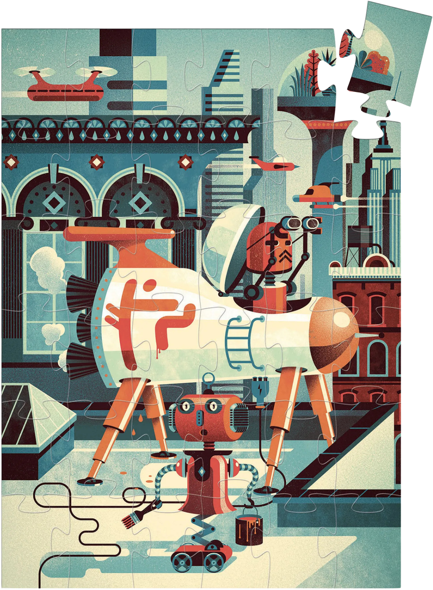Un puzzle formato silhouette a forma di robot coloratissimo, ideale per bambini dai 4 anni in su.