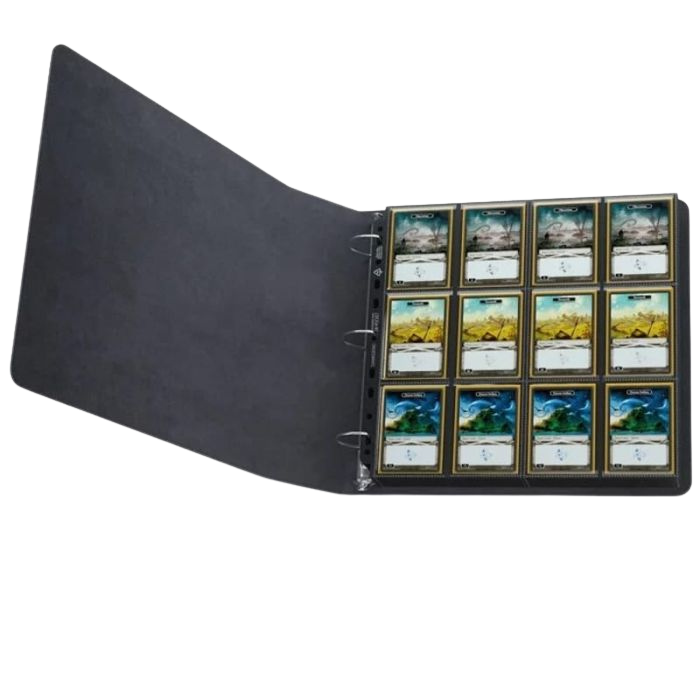 Raccoglitore ad anelli della Gamegenic per fogli portacarte a 12/24 tasche (playset) con copertina resistente antigraffio colorata (NERO) in materiale Nexofyber, modello Prime Playset. Sistema di apertura solido e preciso, 3 anelli di grandi dimensioni. Resistente ed elegante. Si raccomanda l'utilizzo di Fogli 24 Tasche Inserimento Laterale Gamegenic (NERO).