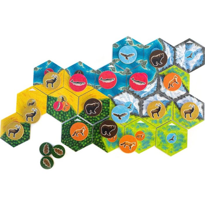 Il cuore del gioco è un puzzle strategico: ogni turno i giocatori scelgono una combinazione di tessera e animale e la posizionano nel proprio ecosistema cercando di rispettare specifici obiettivi di punteggio. Questi variano da partita a partita, rendendo ogni sessione diversa dalla precedente. L’equilibrio tra costruzione del paesaggio e posizionamento ottimale degli animali è ciò che rende Cascadia coinvolgente ma anche accessibile.