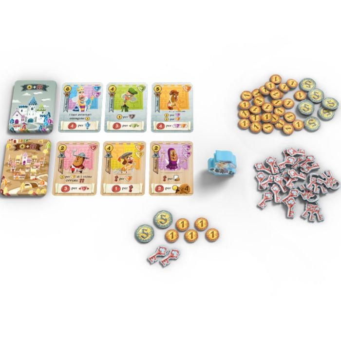 In Castle Combo, il tuo obiettivo è costruire una griglia 3x3 di personaggi, ognuno con abilità uniche che possono essere attivate immediatamente o alla fine della partita. I giocatori iniziano con una quantità limitata di monete da spendere in due mercati aperti: il Castello e il Villaggio. Ogni carta scelta influenzerà le altre nella tua griglia, attivando effetti speciali e bonus che possono cambiare il corso del gioco. La chiave del successo sta nella pianificazione attenta e nella capacità di adattarsi alle mosse degli avversari.