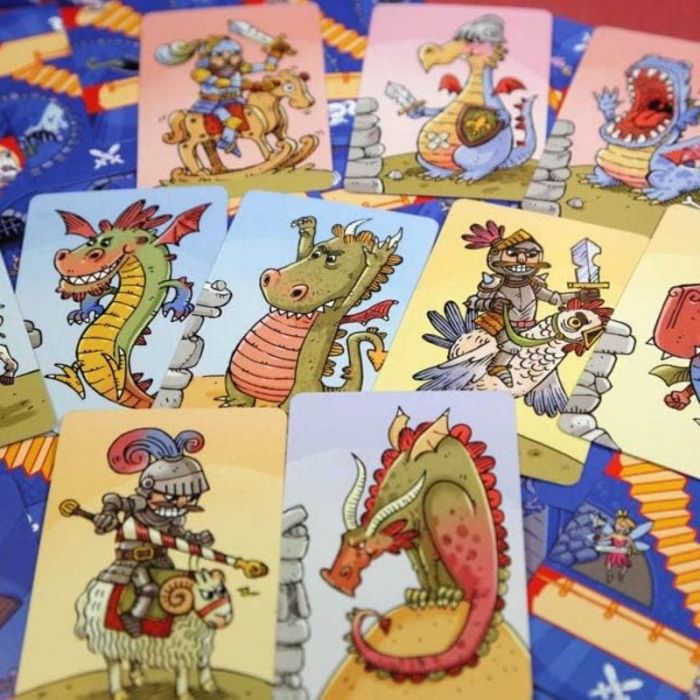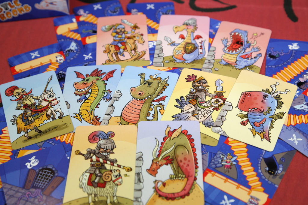 Piazza le carte Stanza per far crescere il tuo Castello, ma fai attenzione! Gli altri costruttori potrebbero utilizzare i Draghi per bloccare la tua opera!!!