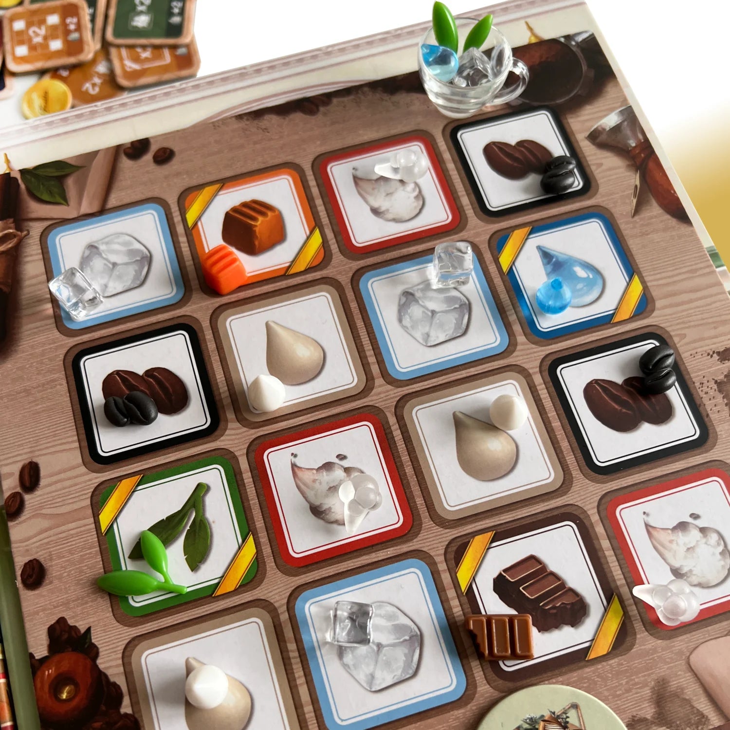Durante la partita, dovrai raccogliere ingredienti spostandoti sul tabellone e usarli per completare ordini il più rapidamente possibile. Ogni ordine soddisfatto aumenta la tua reputazione, mentre quelli trascurati ti faranno accumulare penalità. Più servi, più sblocchi potenziamenti che rendono la tua catena del caffè sempre più efficiente.