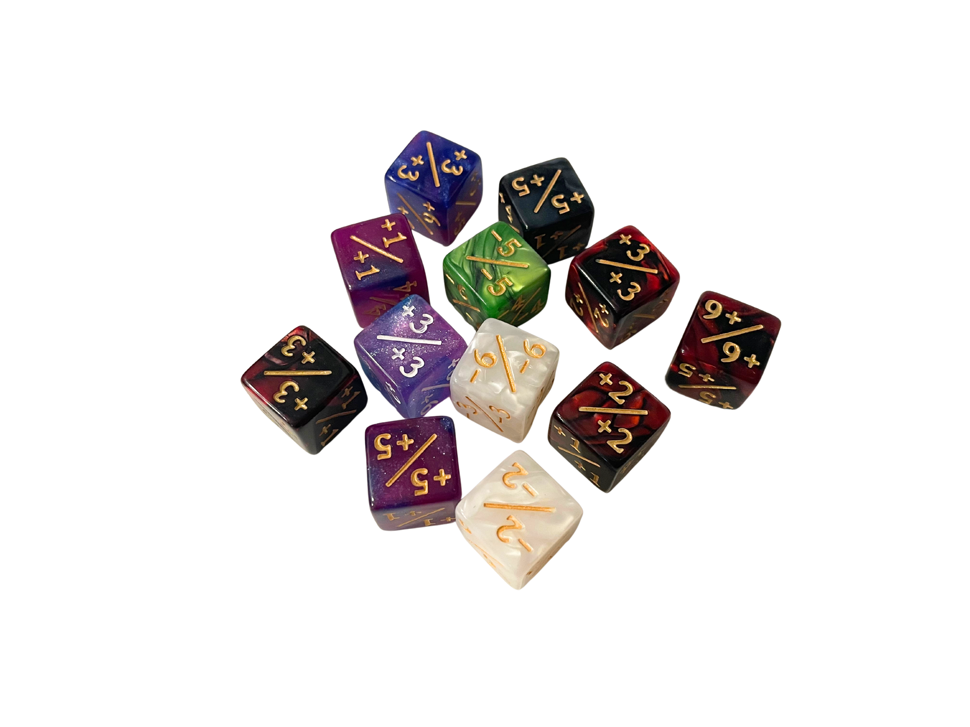 Scopri i nostri dadi segnalino per Magic: The Gathering e altri giochi di carte. Perfetti per tenere traccia di punti vita, segnalini +1/+1, lealtà planeswalker o effetti temporanei. Compatti, pratici e disponibili in vari colori.
