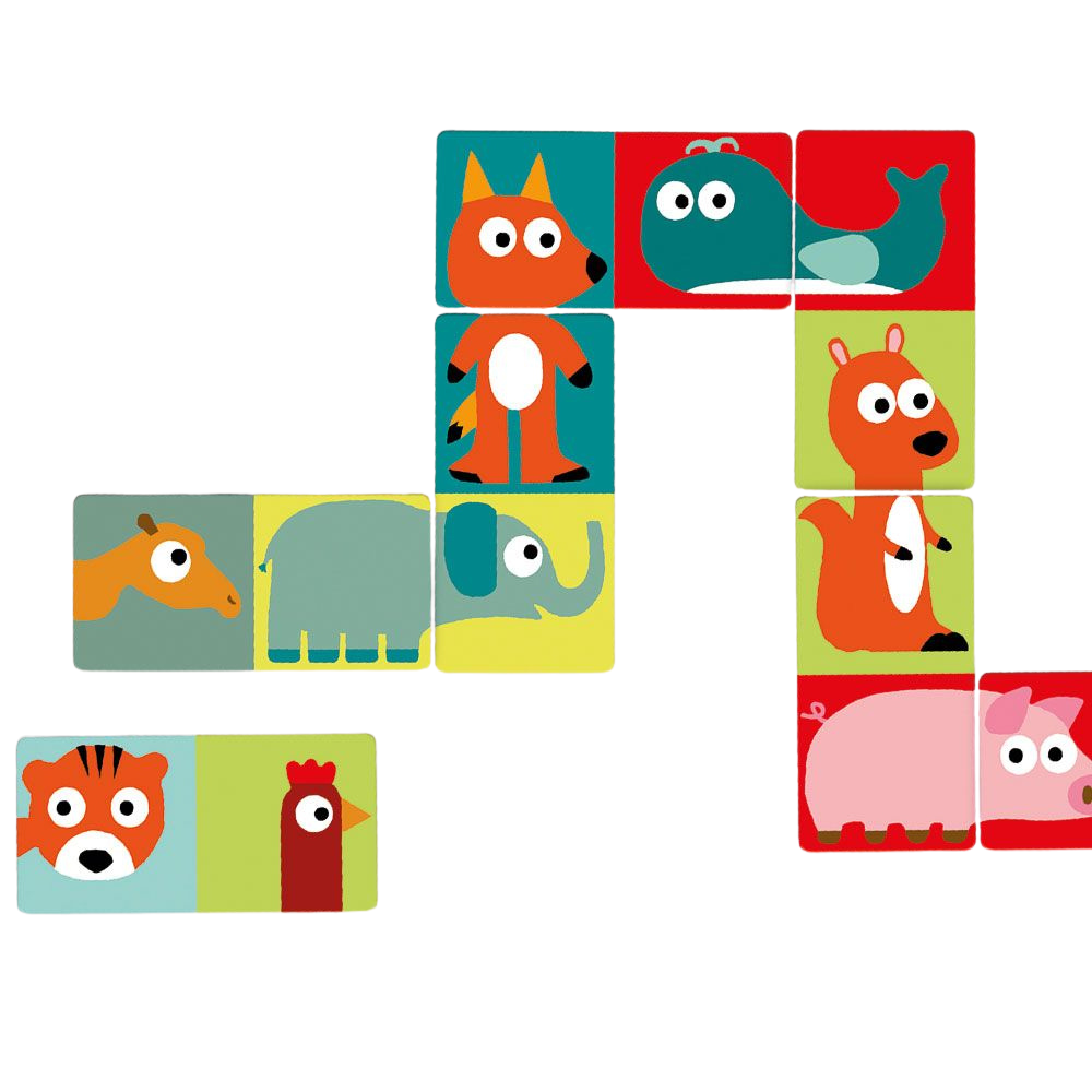 Domino Animo Puzzle di Djeco è una simpatica reinterpretazione del classico gioco del domino, pensata soprattutto per bambini dai 3 anni in su. Questo set unisce il divertimento visivo del puzzle alle regole del domino tradizionale: invece di accoppiare numeri o simboli, i bambini devono trovare le metà corrette per completare l’immagine di un animale. Sul retro delle tessere tradizionali, inoltre, c'è la versione numerica del gioco, ideale per introdurre i primi concetti di conteggio e abbinamento numerico