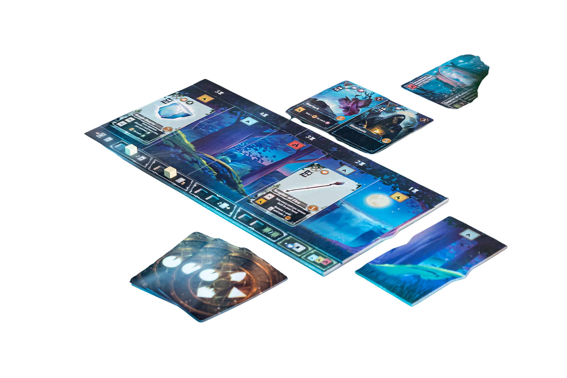 Echoes of Time è un gioco strategico progettato per 2-4 giocatori. Ogni partita è un'esperienza unica grazie alle oltre 100 carte con effetti distinti che permettono di costruire un mazzo diverso ogni volta. Il gioco introduce un'innovativa meccanica di tessere scorrevoli, che guida i giocatori nella gestione del tempo necessario affinché le carte diventino utilizzabili, controllando contemporaneamente il ritmo di attivazione dei loro effetti. La tua strategia sarà fondamentale per superare gli avversari, mentre cerchi di modificare il flusso del tempo a tuo vantaggio.