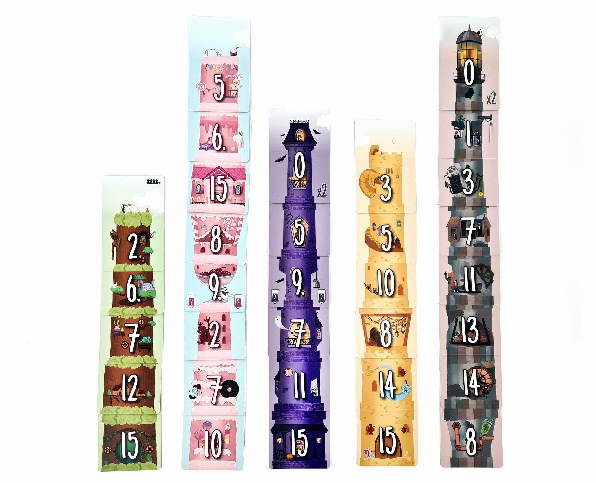 Per ottenere le carte necessarie, dovrete partecipare a un’asta: chi rilancia di più, prende tutte le carte dichiarate. Ma attenzione, perché dovete poterle posizionare: ciascuna sulla torre del proprio colore e di valore inferiore a quella precedente (tranne l’8 e il 9 che hanno delle eccezioni).