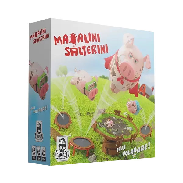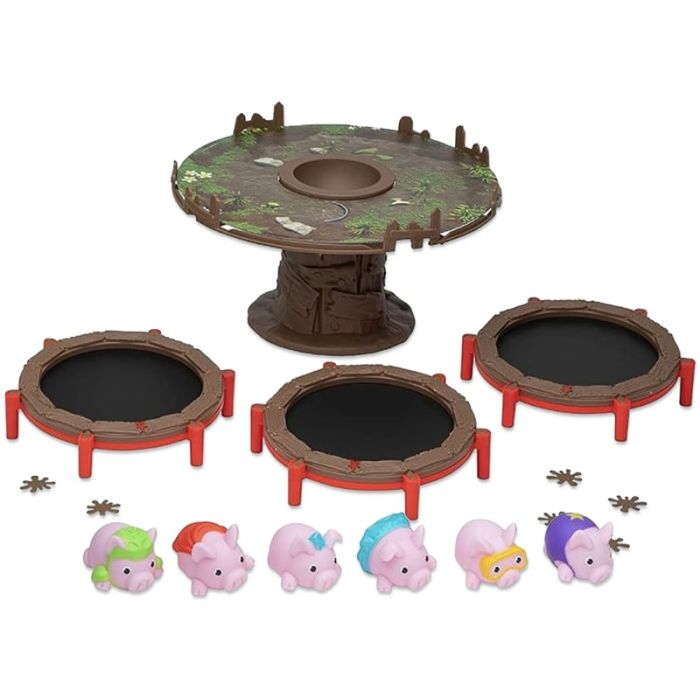 Usate i trampolini per far rimbalzare i maialini nel porcile e cercate di farli atterrare nella pozza di fango! Ogni maialino che farete atterrare nella pozza vi farà guadagnare una tortina di fango. Fate rimbalzare i vostri maialini fino a che non finiscono le tortine di fango. Il maialino più fangoso vince!