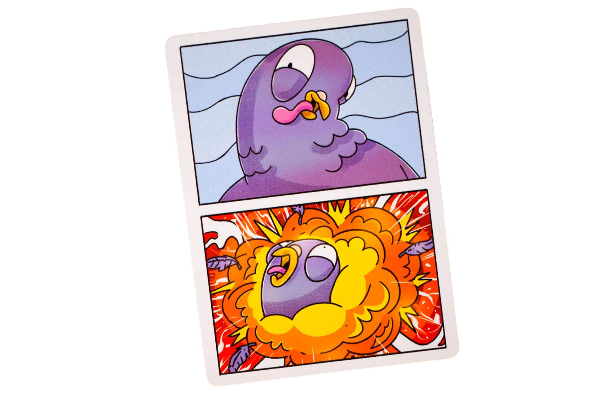 Piccioni Esplosivi è un gioco di carte strategico che unisce interazione e divertimento in un'esperienza unica. Immagina di trovarti in un mondo dove i piccioni sono protagonisti di sfide esilaranti, e il tuo compito è quello di nutrirli per renderli felici o di ingozzare quelli degli avversari fino a farli esplodere. Ogni partita è un viaggio inaspettato in cui le risate sono garantite, e la strategia è la chiave per la vittoria.