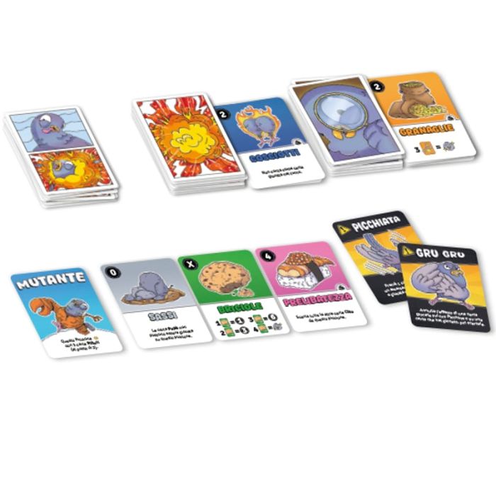 Il gioco si compone di 140 carte, ognuna delle quali offre diverse possibilità di azione. Durante il tuo turno, potrai scegliere se nutrire i tuoi piccioni con cibo delizioso o sabotare i piani degli avversari ingozzando i loro piccioni. La meccanica di gioco è semplice ma richiede attenzione e astuzia per anticipare le mosse degli altri giocatori. Piccioni Esplosivi è adatto sia per sessioni di gioco rapide che per serate più lunghe con amici e famiglia.