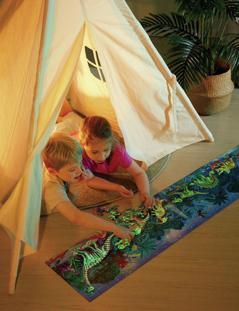 Il "Puzzle Dinosauri" di Hape è un’affascinante avventura nel mondo preistorico, perfetta per i piccoli amanti dei dinosauri! Realizzato in legno e illustrato con colori vivaci, aiuta a sviluppare la memoria, la coordinazione e la concentrazione. Ma la vera magia arriva al buio: alcune parti del puzzle si illuminano, sorprendendo i bambini e rendendo il gioco ancora più coinvolgente! Il set comprende inoltre 10 carte illustrative piene di curiosità sui dinosauri, per rendere il gioco anche educativo e interattivo. Sicuro, sostenibile e ricco di dettagli, è un regalo educativo che conquista al primo sguardo.