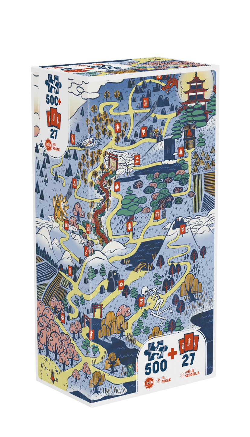 Questo fantastico paesaggio è sicuramente pieno di sorprese! Mentre viaggi lungo le sue strade collinari, scoprirai creature curiose e luoghi incredibili. Hai finito il puzzle? Il divertimento non finisce qui! Segui diversi percorsi e rivela gradualmente le carte che corrispondono ai simboli che scopri. Posizionandole sopra il puzzle, scoprirai il risultato delle tue scelte! Come raggiungerai il tempio?