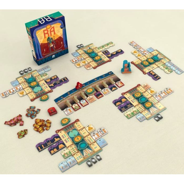 Ra è uno dei giochi più famosi di Reiner Knizia, qui è disponibile la nuova edizione che presenta una grafica completamente rinnovata e componenti sontuosi (e cosa importante è finalmente in italiano!). Si tratta di un gioco per 2-5 giocatori della durata di circa 30-60 minuti.