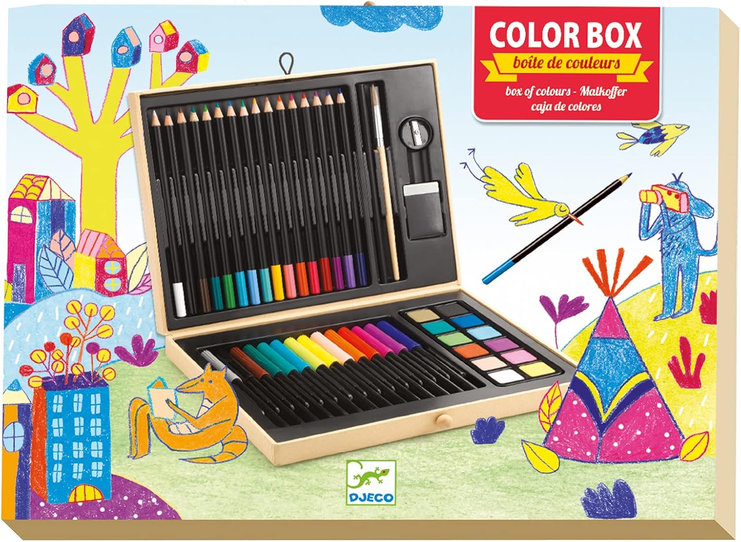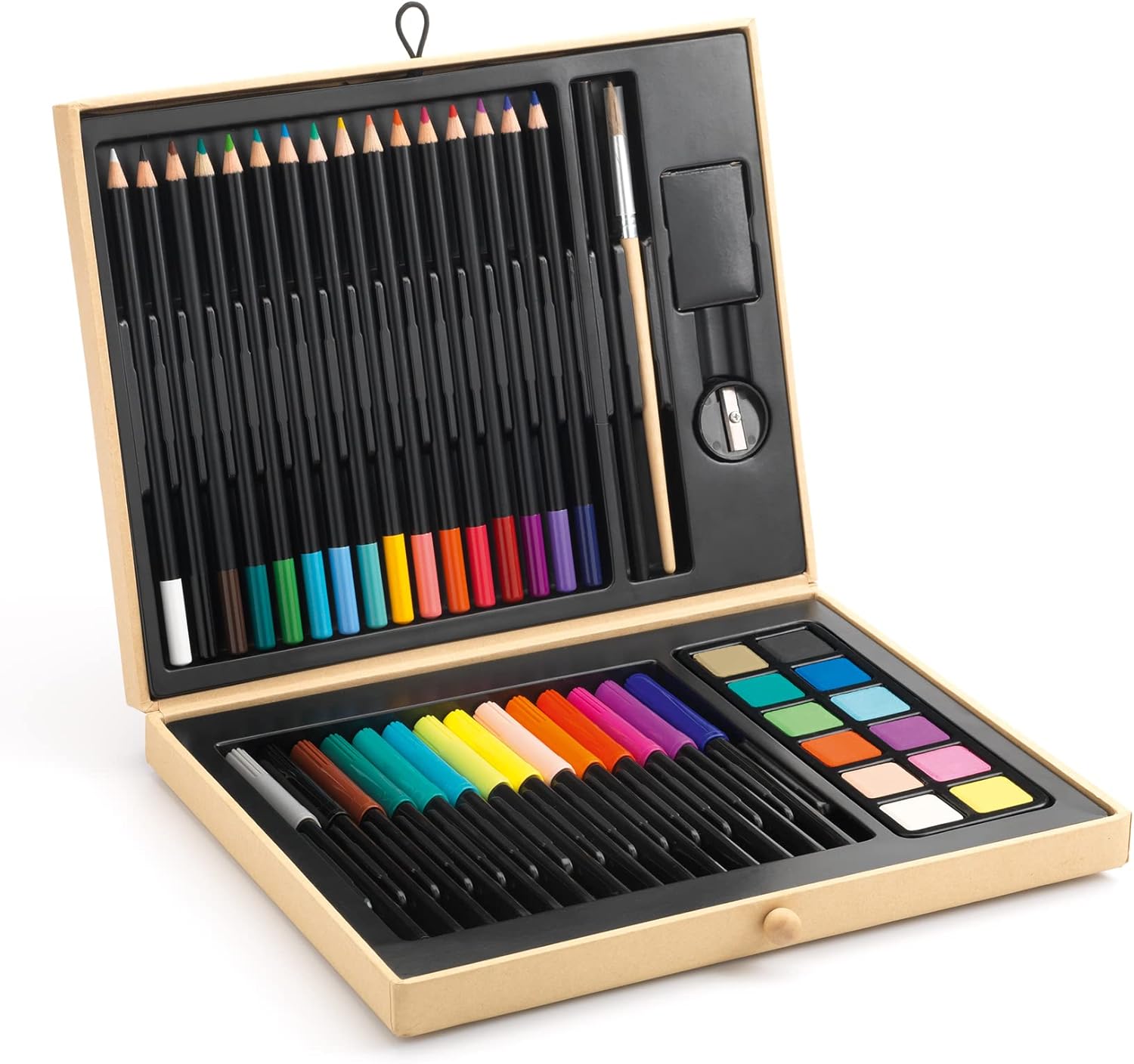 Scatola dei Colori Djeco: grazie a questo set di pittura ogni bambino potrà avere sempre con sè il necessario per creare le proprie opere d'arte! Una vasta scelta di colori e materiali di qualità. Pennarelli, matite colorate, acquerelli.. non manca proprio niente!