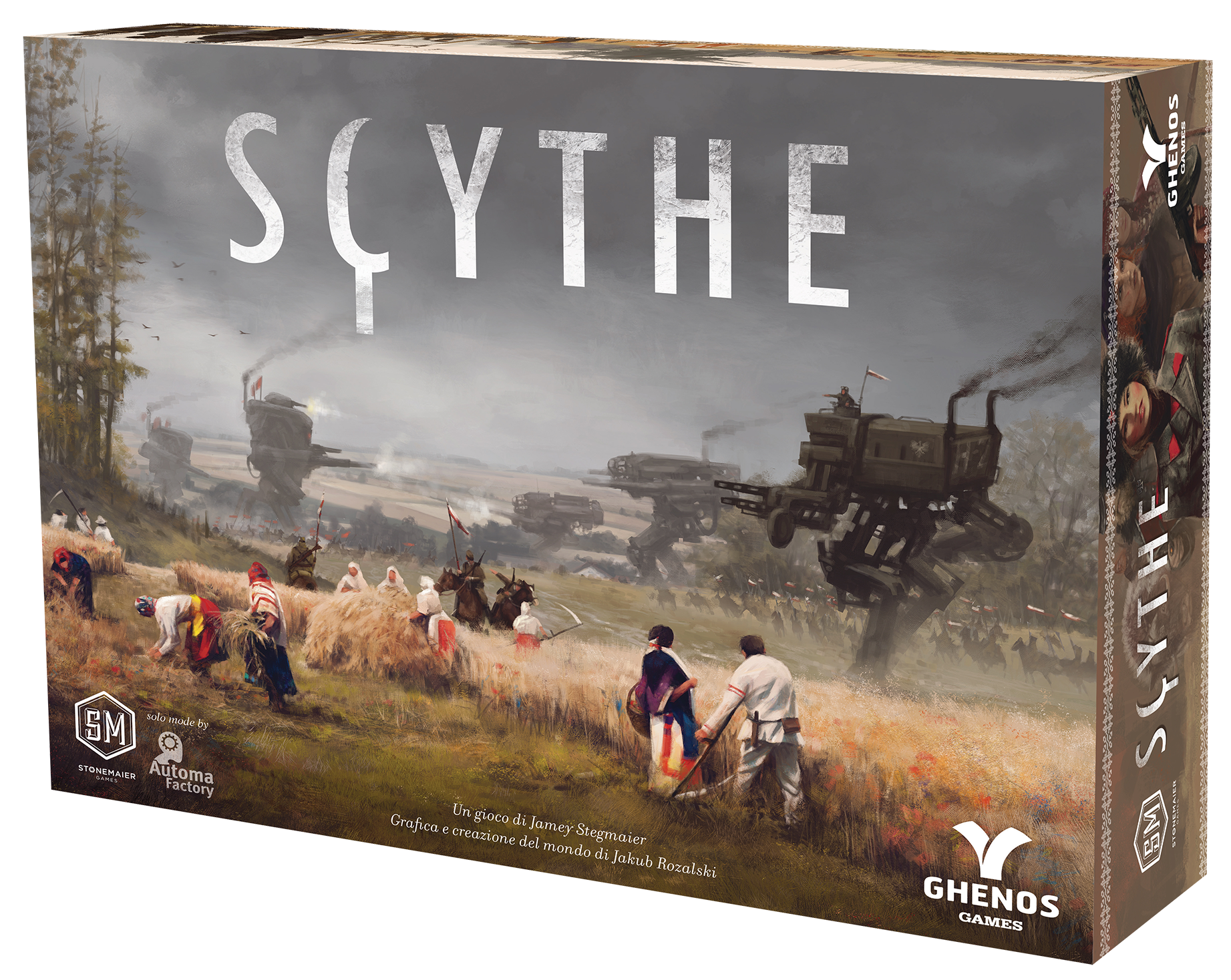 In Scythe, ogni giocatore rappresenta un personaggio che tenta di fare in modo che la propria fazione diventi la più ricca e la più potente nell’Europa dell’Est. I giocatori esplorano e conquistano il territorio, arruolano nuove reclute, producono nuove risorse e lavoratori, costruiscono strutture e dispiegano i mostruosi Mech.