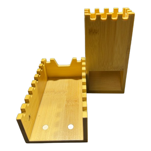 Porta precisione e stile alle tue sessioni di gioco con questa torre lanciadadi in legno, progettata per offrire tiri casuali e bilanciati con un tocco di eleganza. Il design richiudibile permette di trasformarla in una pratica scatola compatta, ideale per il trasporto e la conservazione. Realizzata con materiali di alta qualità, questa torre combina robustezza e un’estetica raffinata, con dettagli che ricordano le mura di un castello.