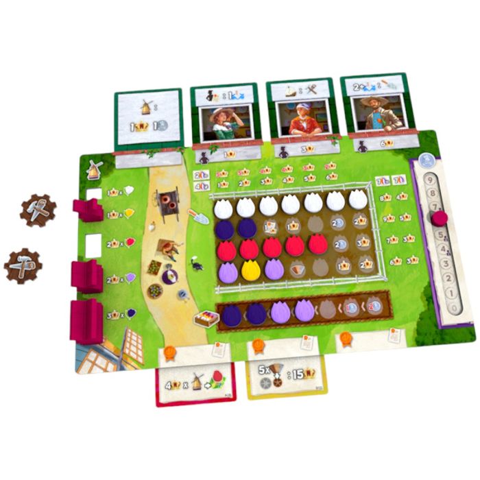 È la fine del XIX secolo e oltre 9000 mulini a vento punteggiano il paesaggio dei Paesi Bassi. In Windmill Valley, vi troverete immersi in questo scenario pittoresco, dove i mulini a vento caratterizzano il paesaggio e i campi di tulipani colorati si estendono tra i polder, terre bonificate grazie a queste straordinarie costruzioni. Dall'autore di Barcelona e di Arborea, questo gioco vi sfida a costruire i vostri mulini e a coltivare magnifici tulipani, trasformando la terra olandese in un capolavoro di colori. Tra i mulini si estendono campi di tulipani, un fiore che un tempo fu al centro della prima bolla finanziaria della storia e che oggi è un'icona del paesaggio olandese, in particolare lungo la famosa Via dei Fiori, la Bloemen Route.